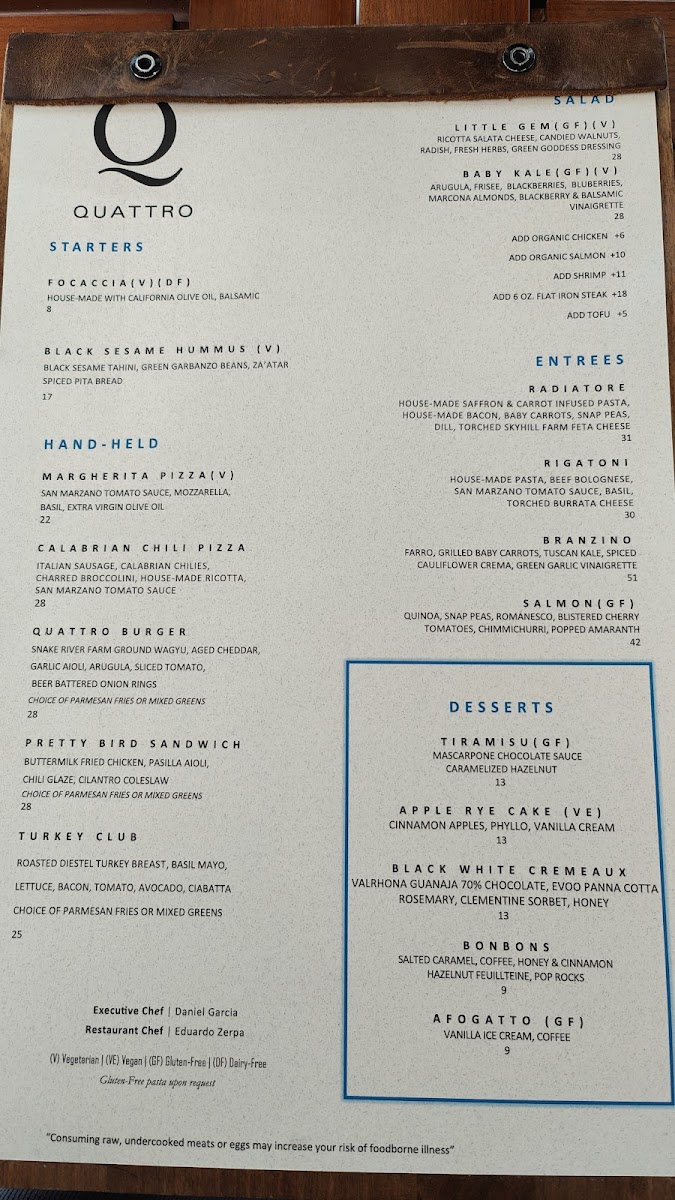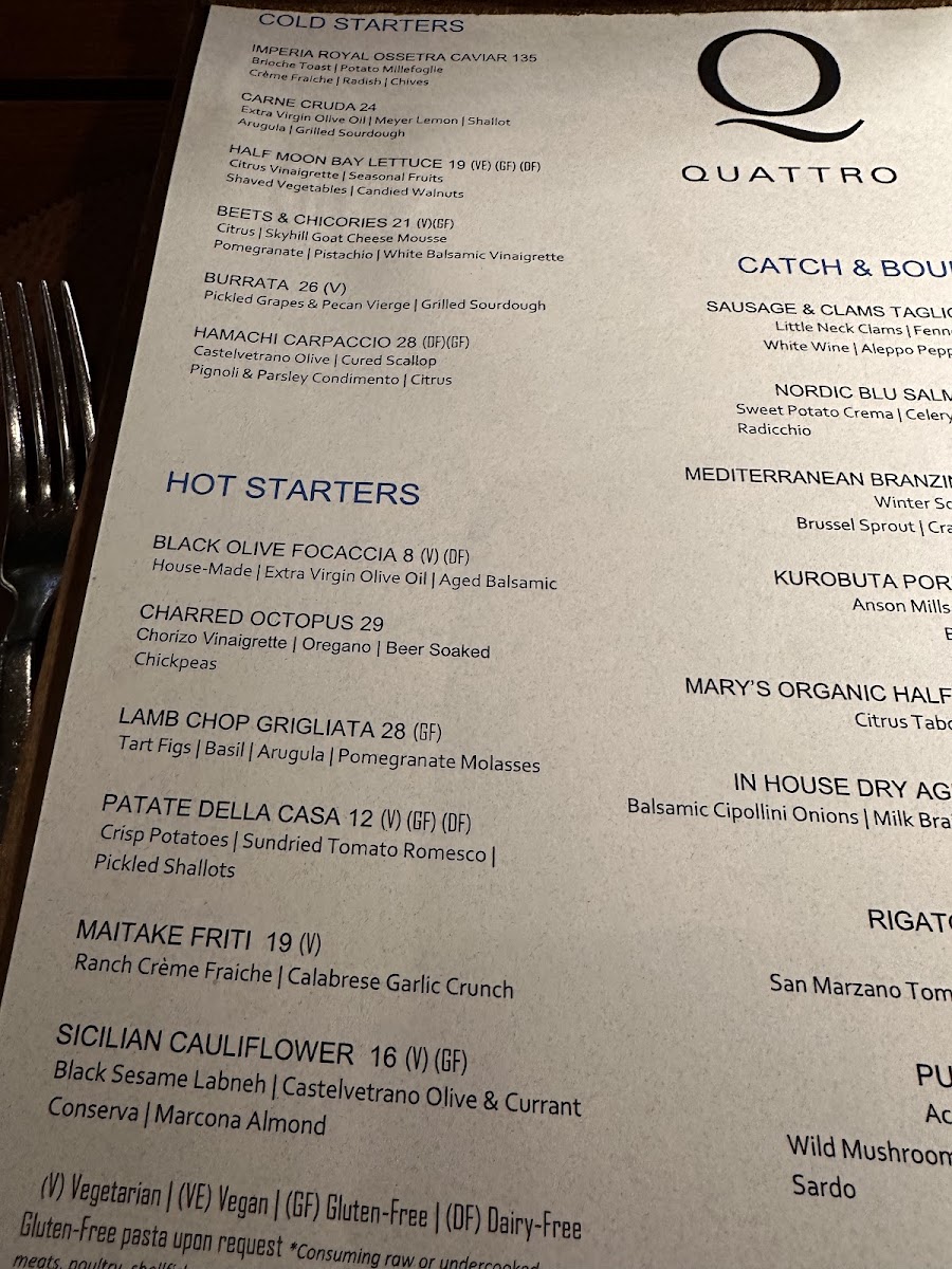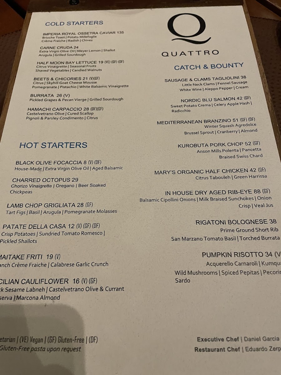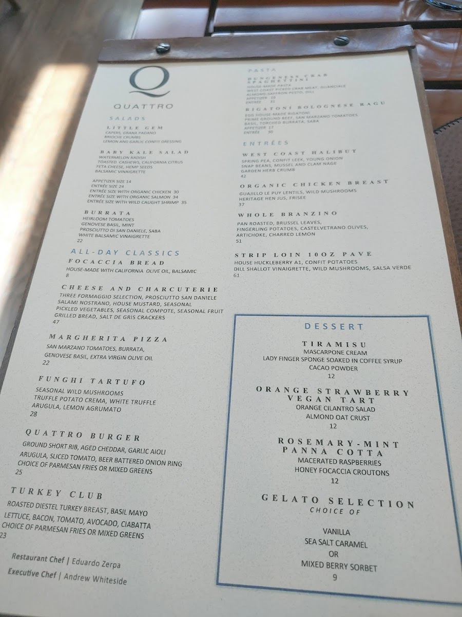Located in the heart of East Palo Alto, Quattro Restaurant and Bar offers a delightful escape into the world of contemporary Italian cuisine, seamlessly merging traditional flavors with a modern twist. Nestled within the elegant Four Seasons Hotel, this restaurant is not just a dining venue; it’s an experience that will tantalize your taste buds and leave you yearning for more.